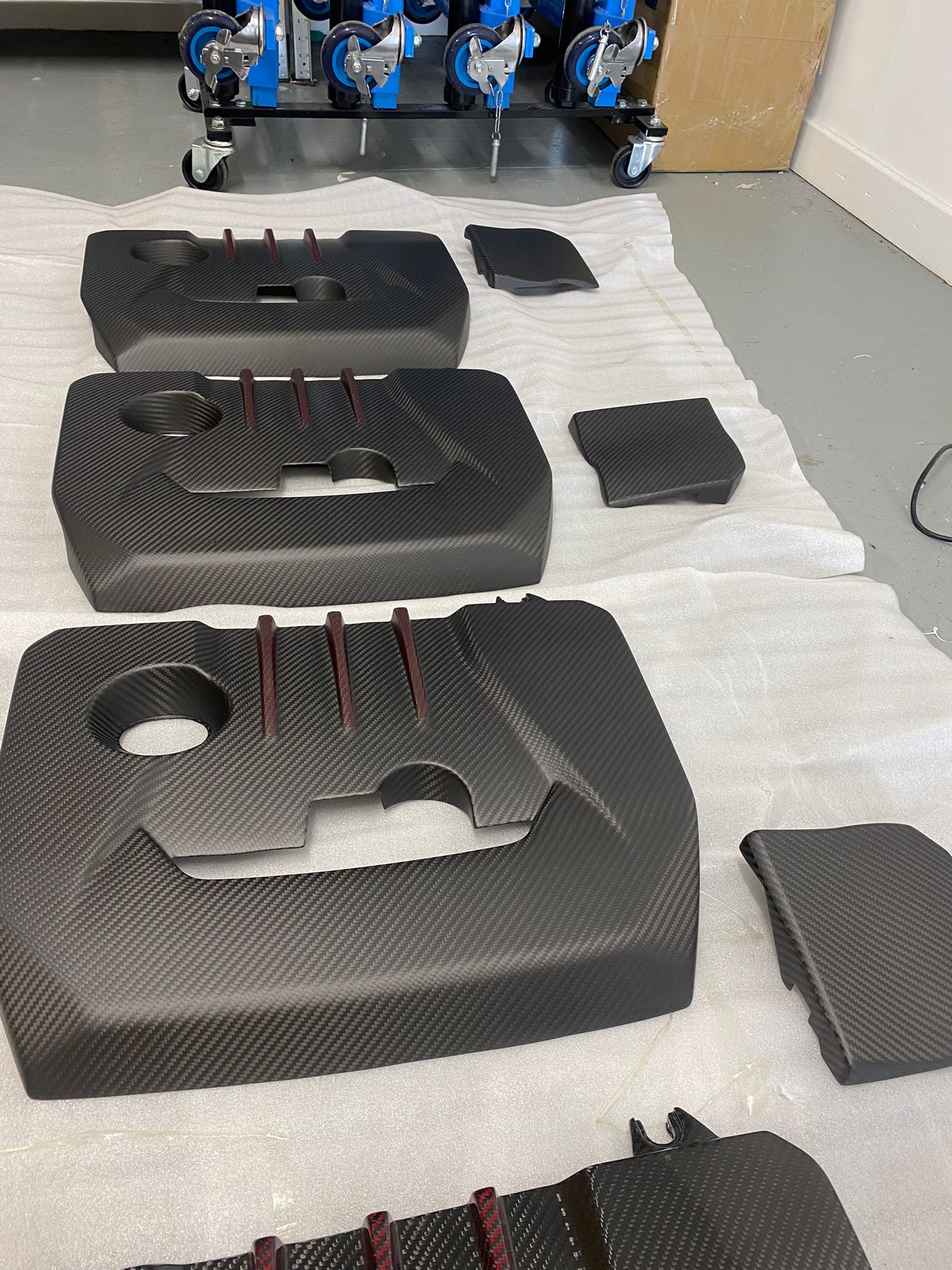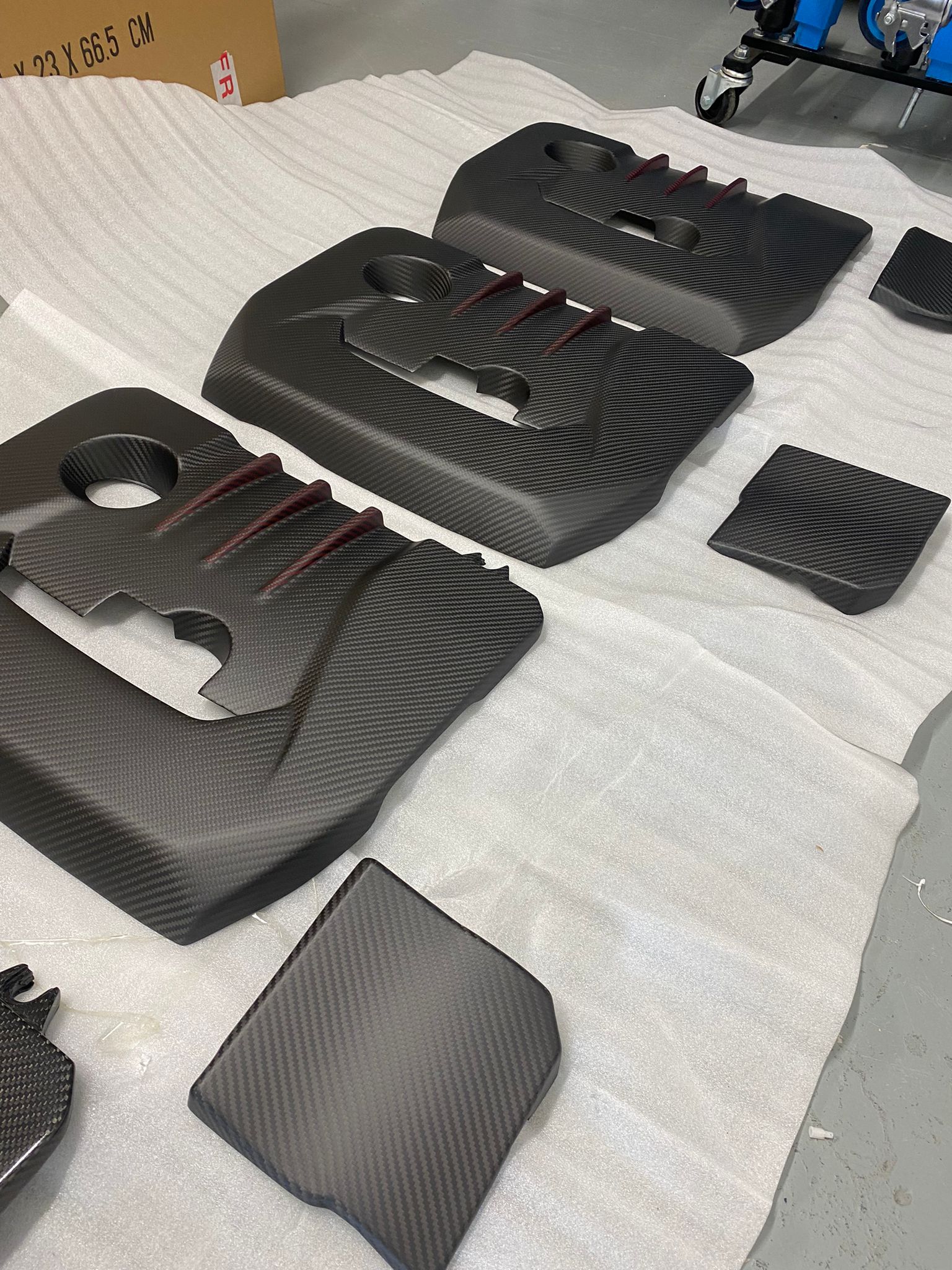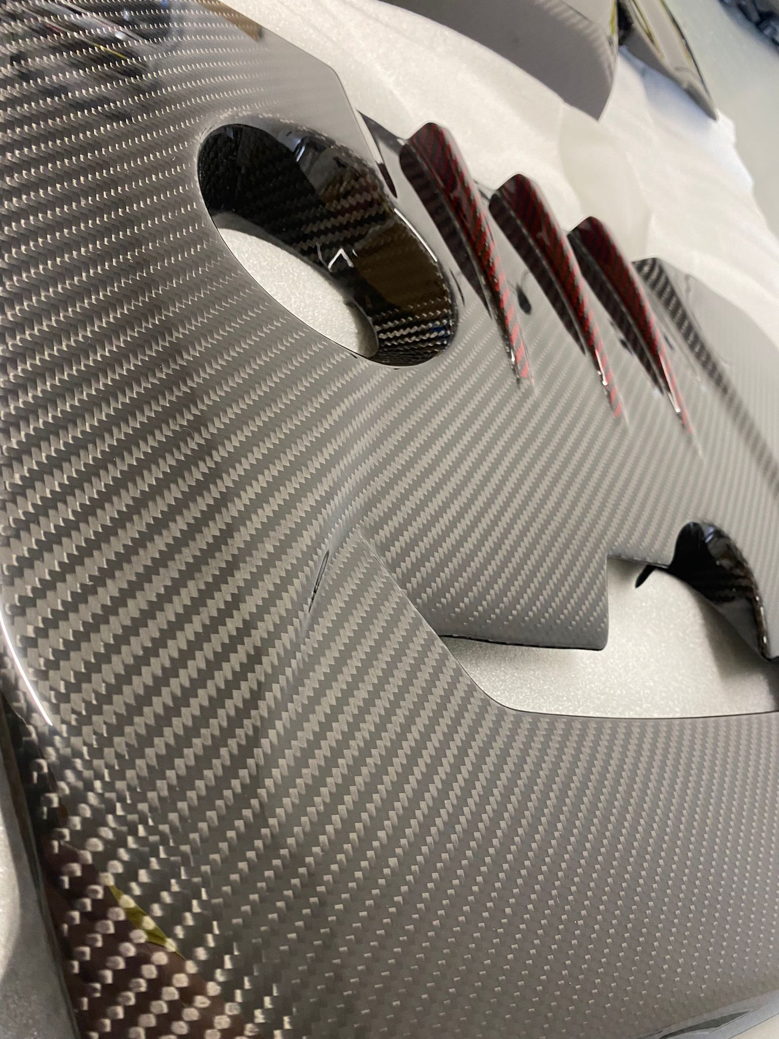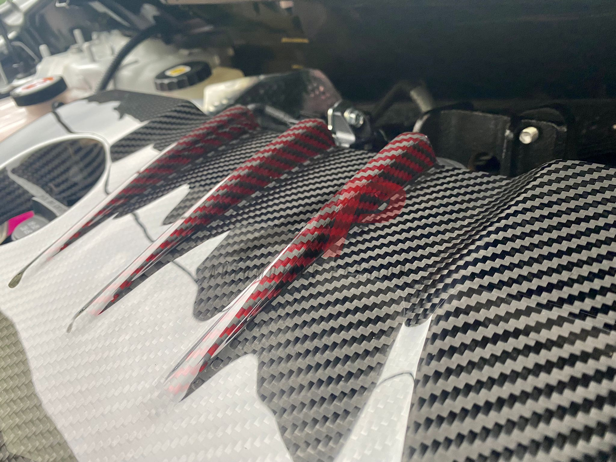 x1 Dry Carbon Fibre Pre Preg Engine Cover with red carbon fins (as seen in picture)