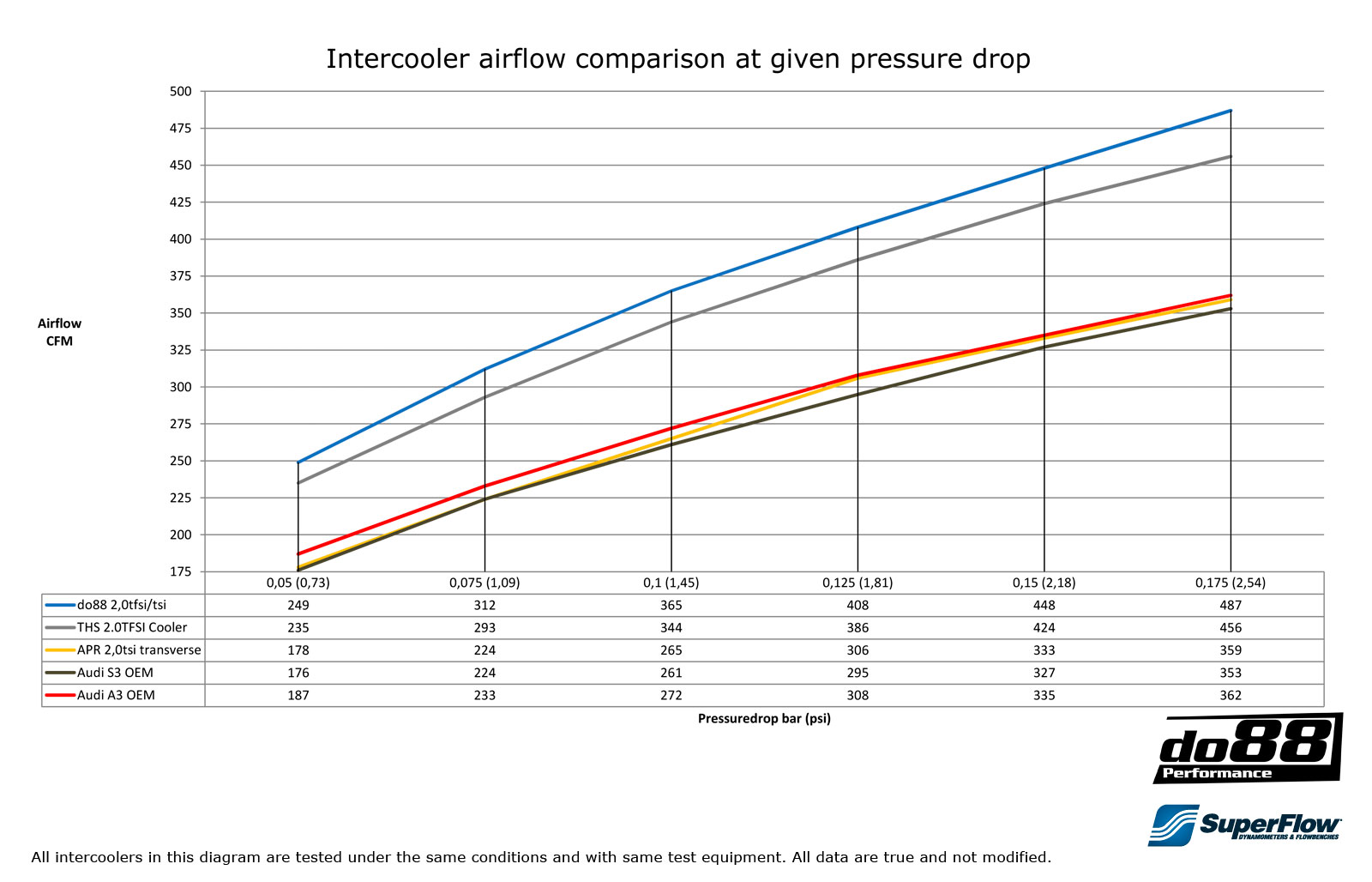 zalety (porównanie z OEM) – powierchnia intercoolera 13342cm3 (7676cm3), do88 jest 74% wiekszy! |