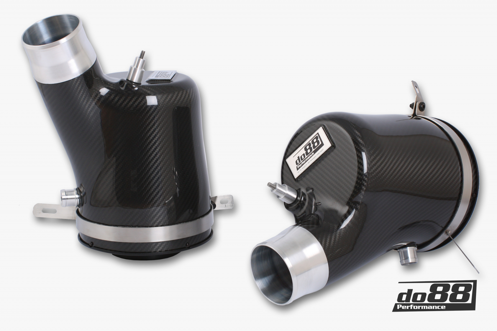 The do88 air intake kit is made from vacuum infused, prepreg carbon fiber of the finest quality. It comes with CNC-machined connections towards the turbo inlet hoses. To boost the airflow, the kit really takes advantage of the full space provided within the car´s structure. The carbon housings are made to accommodate a big, inverted cone filter from renowned BMC, featuring their finest filter media at hand. The intake kit is held in place by a stainless water jet cut bracket. The do88 intake kit replaces the entire OE air filter box and is a true performance upgrade!