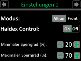 Dzięki Haldex Control Unit Evo masz pełną kontrolę nad swoim napędem na wszystkie koła i możesz ustawić i zapisać wszystkie właściwości zgodnie ze swoimi pomysłami.
