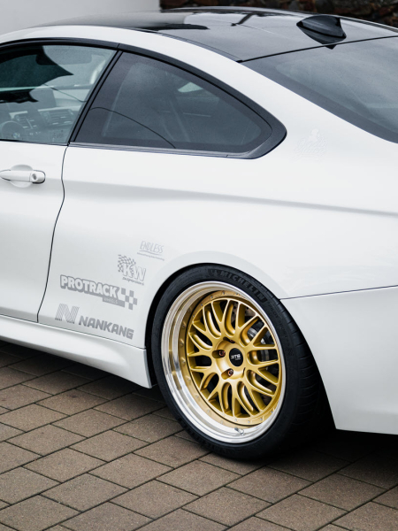 For example, pay attention to: (coilover suspension, adjustable strut bearings, at least -2.5° camber and spacers may be required!)