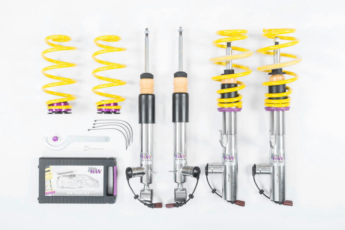 Zawieszenia KW DDC Street Plug and Play są dedykowane do samochodów z fabryczną regulacja siły tłumienia, zmieniając ich charakterystykę na bardziej dynamiczną. Posiadają płynną regulację wysokości auta na gwincie.